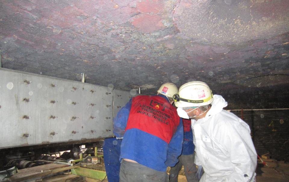 Installatie van schermen met hoge temperatuur om de energie-efficiëntie te verbeteren door hete dampen om te leiden naar de producten die de oven binnenkomen. De drukval gecreëerd door de muur zal helpen om de kop-staart (lengterichting) homogeniteit van de producten (blooms genoemd) te verbeteren.